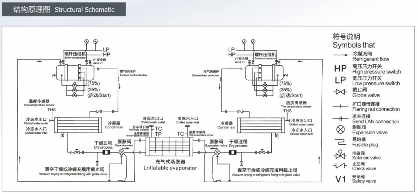 ◆This model uses a shell and tube condenser. It is convenient to remove the cover formaintenance and repair when the pressure of the compressor high pressure gauge isfound to be high during a certain period of use.