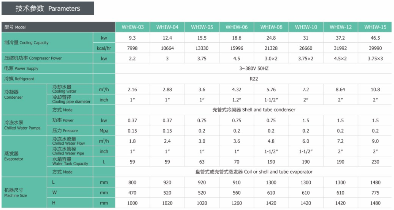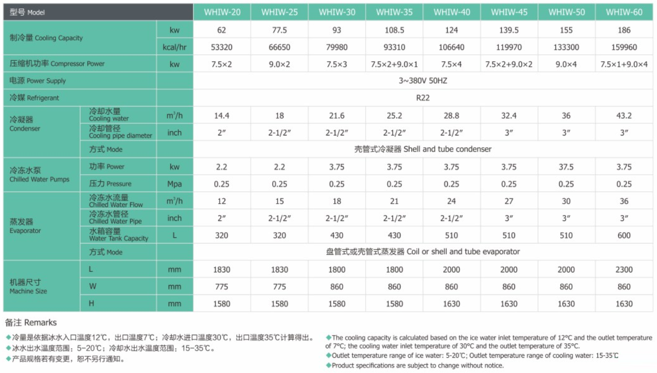 ◆The box-type water-cooled chiller must be installed with a cooling water tower orother cold water source and a heat-dissipating circulating water pump before it canbe used. If this condition is not met, please choose another chiller from ourcompany: box-type air-cooled chiller.